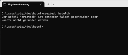 als Präsentation ▻Ich tippe in eine Kommandozeile createdb hoteldb ein, und erwarte, dass ein bestimmtes Programm gestartet wird. In diesem Beispiel gehört das Programm createdb zur Datenbank Postgres, und ich verwende es um eine neue Datenbank namens hoteldb zu erstellen.