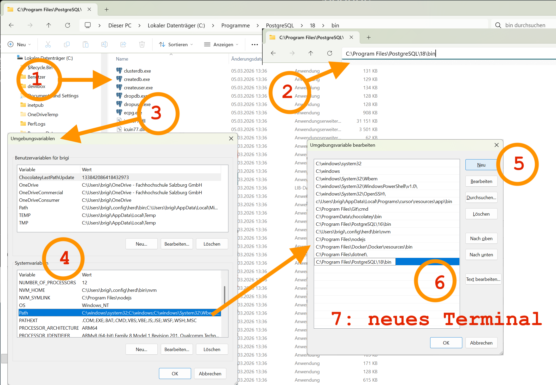 Pathklicken und dann auf den bearbeitet-Button - Schritt: Im Fenter “Umgebungsvariablen bearbeiten” auf den Button “Neu” klicken